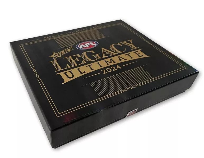 Select’s Series 2 for 2024 came out very late in the year (November) and had a very different format. Instead of 24 or 36 packs in a box, each box contained 4 mini packs. 1 pack was a team set of 15 base cards (but numbered), and 3 gold packs with 7 cards each. Select Legacy Ultimate is a loaded release, which will excite many collectors but also worry others, with both overwhelm after such a big year already, and hurting prices of singles, from both current and older sets. There are many returning favourites such as Vortex, Draft Pick Signatures, All Australian and Medal Cards, but also some new ones including Future’s Finest and Prototype. While a pretty sweet looking release, with plenty of numbered cards, it has some questioning whether there are too many. Both Influential (/40) and Legacy (/35) appear in the set, along with lots of other subsets numbered under 100. On top of this, there were unlisted Footy’s Finest Black cards, one player from each team and limited to just 30. Old school collectors will love the addition of the Jason Dunstall Legend Signature, the most recent and highly popular legend, in one of the most iconic sets in the hobby.